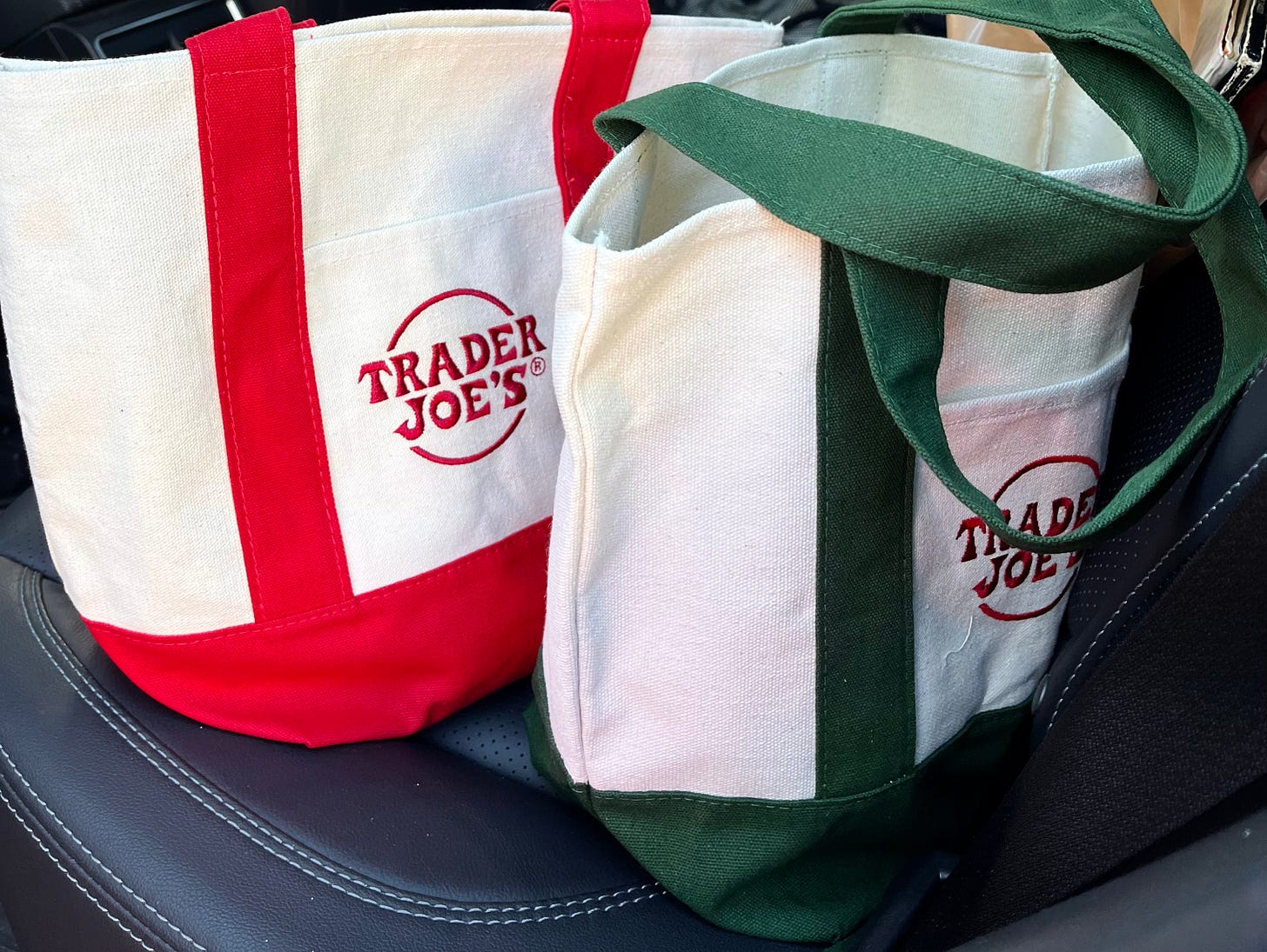 As of last month, I own a Trader Joe’s mini canvas tote bag. Its tan body and cherry red straps aren’t even the allure of it. Just the Trader Joe’s embroidery on the front. And the fact that it was $2.99 and that it went viral and sold out of stores (probably nationwide?) within days.