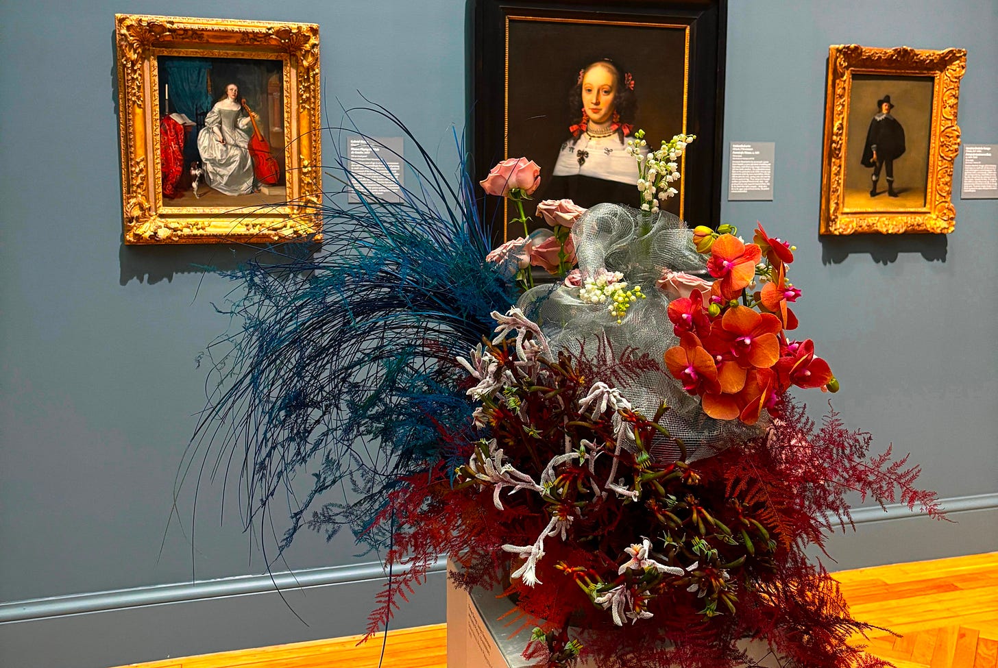 Spacing and location have a lot to do with the choice of artworks, too. The museums consciously assign artworks that aren’t right next to each other to give the floral arrangements room to breathe and accommodate the high visitor traffic during this annual event.