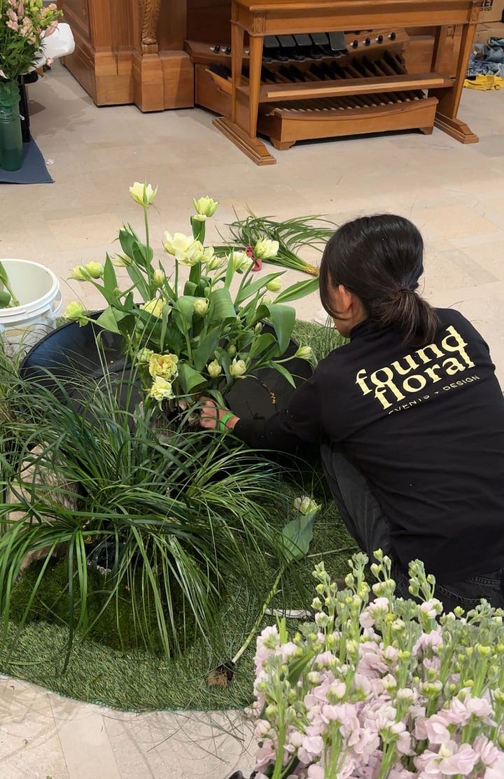 One of the perks of being a journalist, especially one in the arts and culture space, is getting a first look at exhibition openings and installations. I’ve filmed exhibition installation videos for the museum where I work, but sometimes capturing all of the drilling and leveling isn’t that exciting. But seeing florists at work, creating living art before your eyes, is far more interesting.